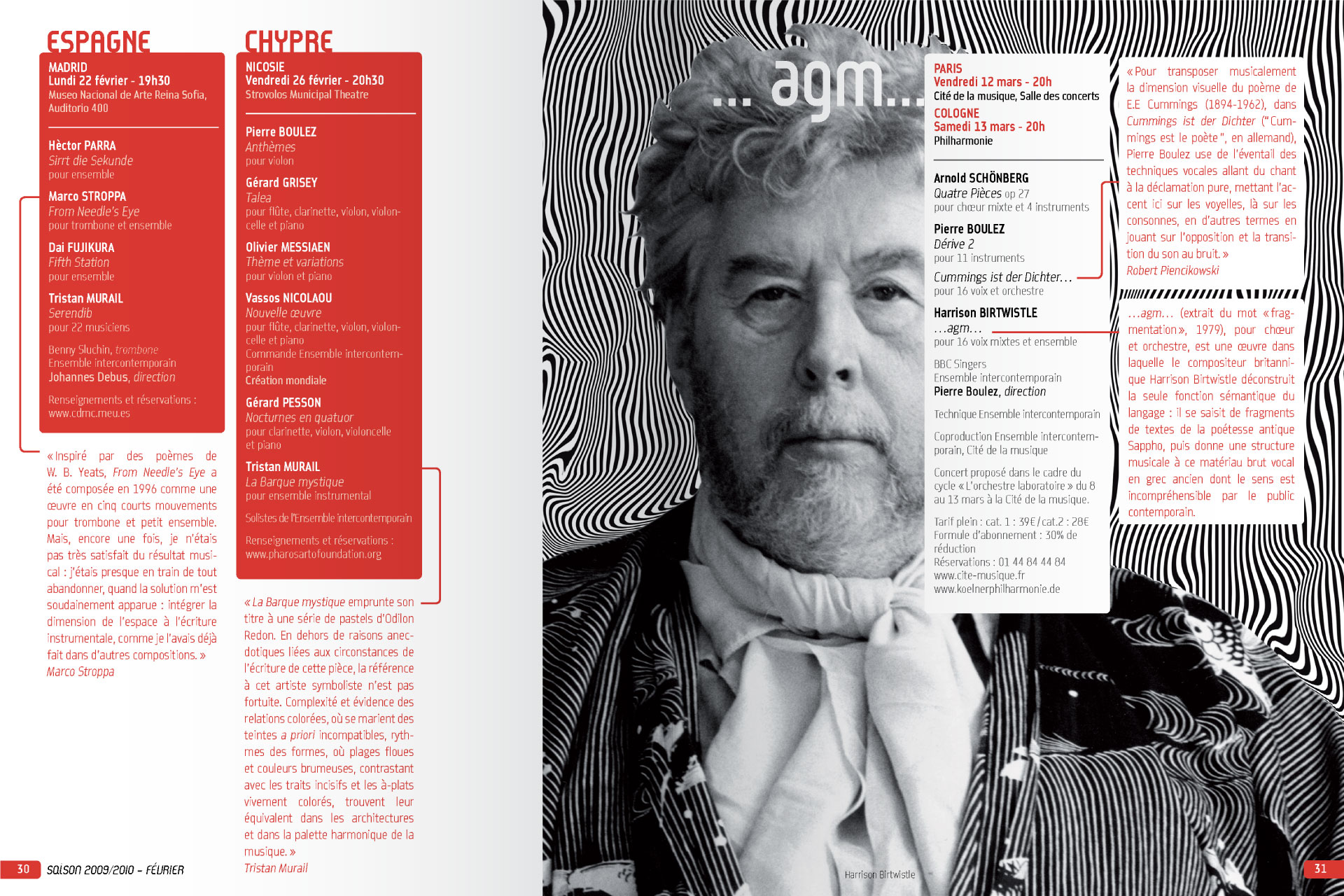 Programme de L’Ensemble Intercontemporain / Illustration, composition graphique et mise en page