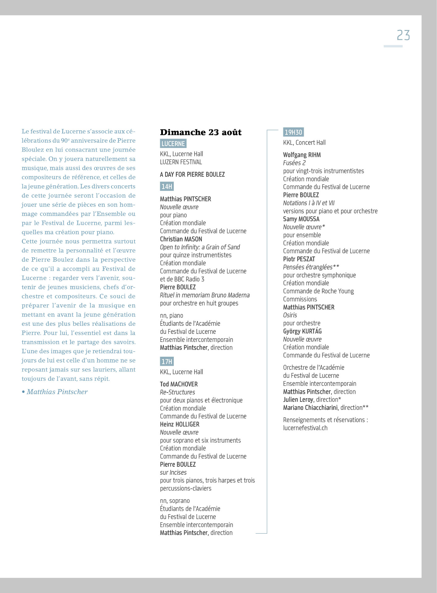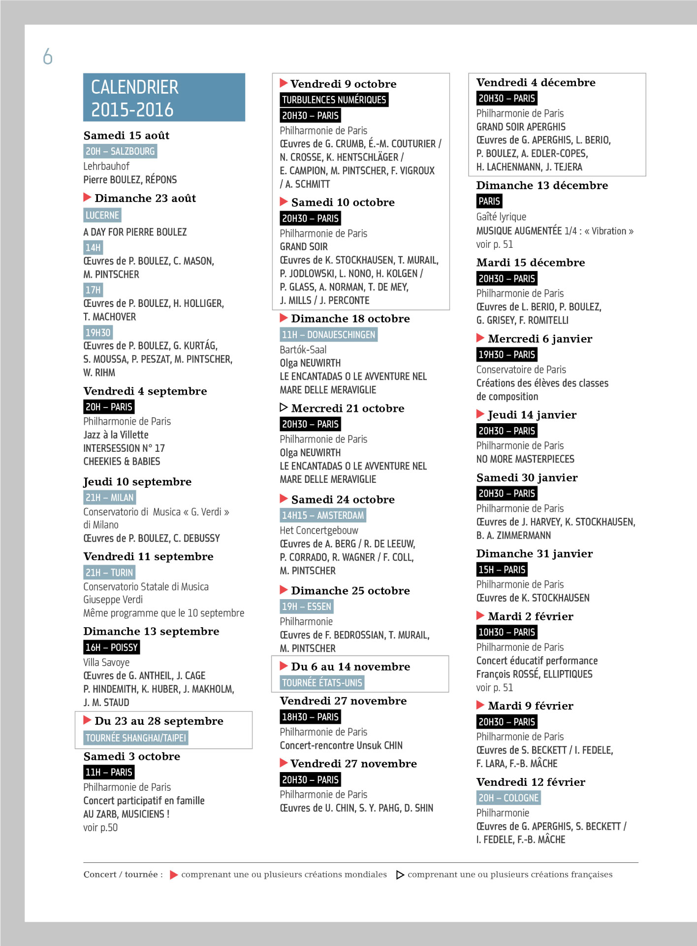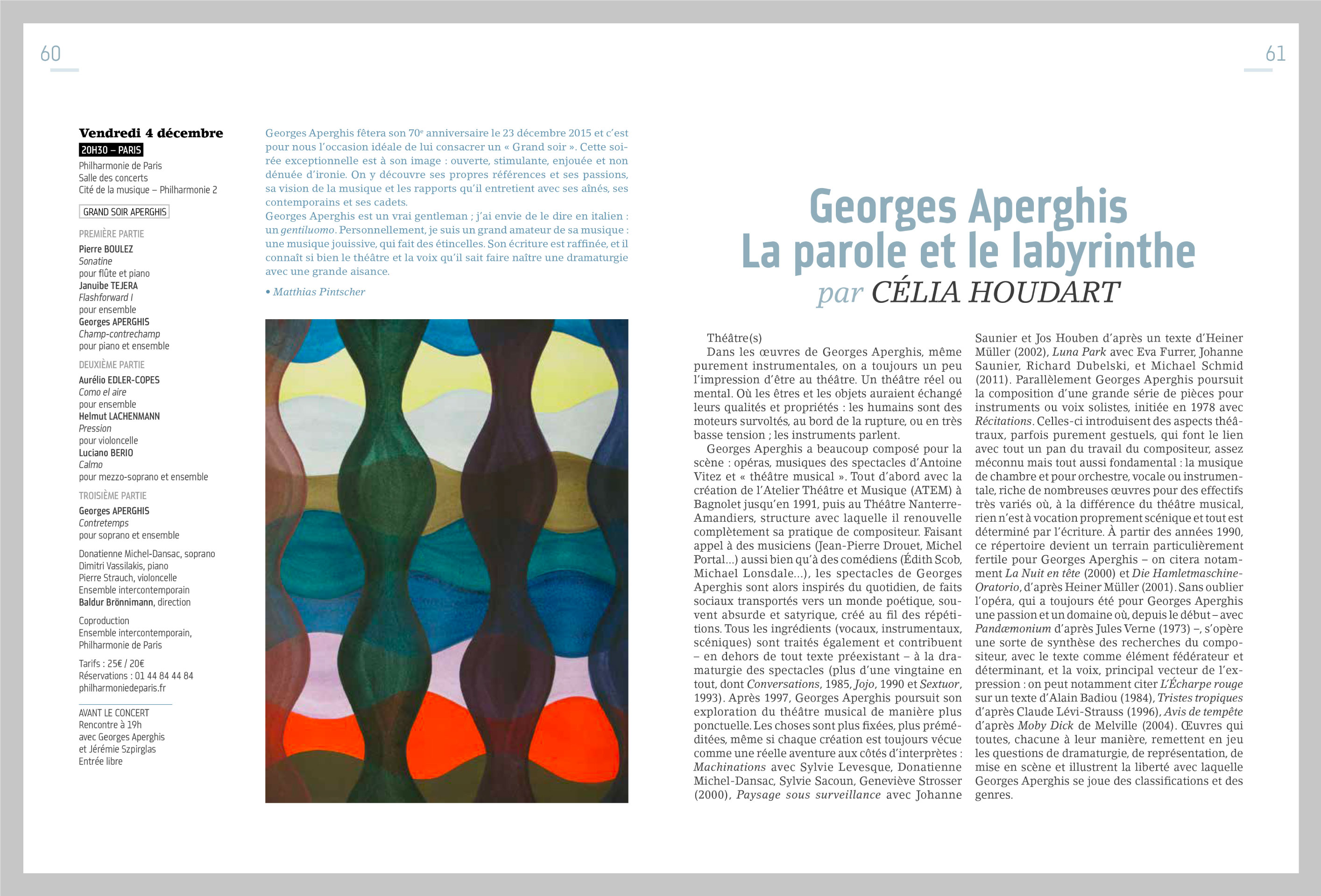 Programme de L’Ensemble Intercontemporain / Illustration, composition graphique et mise en page